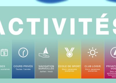 Dériveur optimist, dériveur double, planche à voile, catamaran fun boat et dart 16, voilier first 31.7, stand up paddle. Enseignement et Entraînement. Centre de régate. Stages, leçons, voile scolaire, groupe CE.